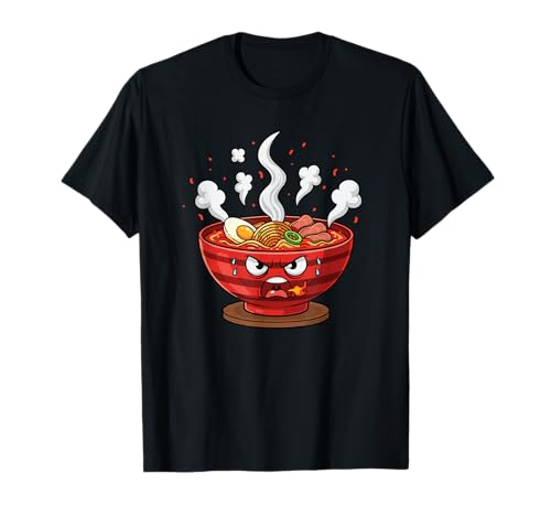 Fiery Angry Ramen Bowl Steaming Noodle Face T-Shirt