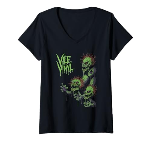 Womens Vile Vinyl Creepy Monsters with Dripping Faces Halloween V-Neck T-Shirt