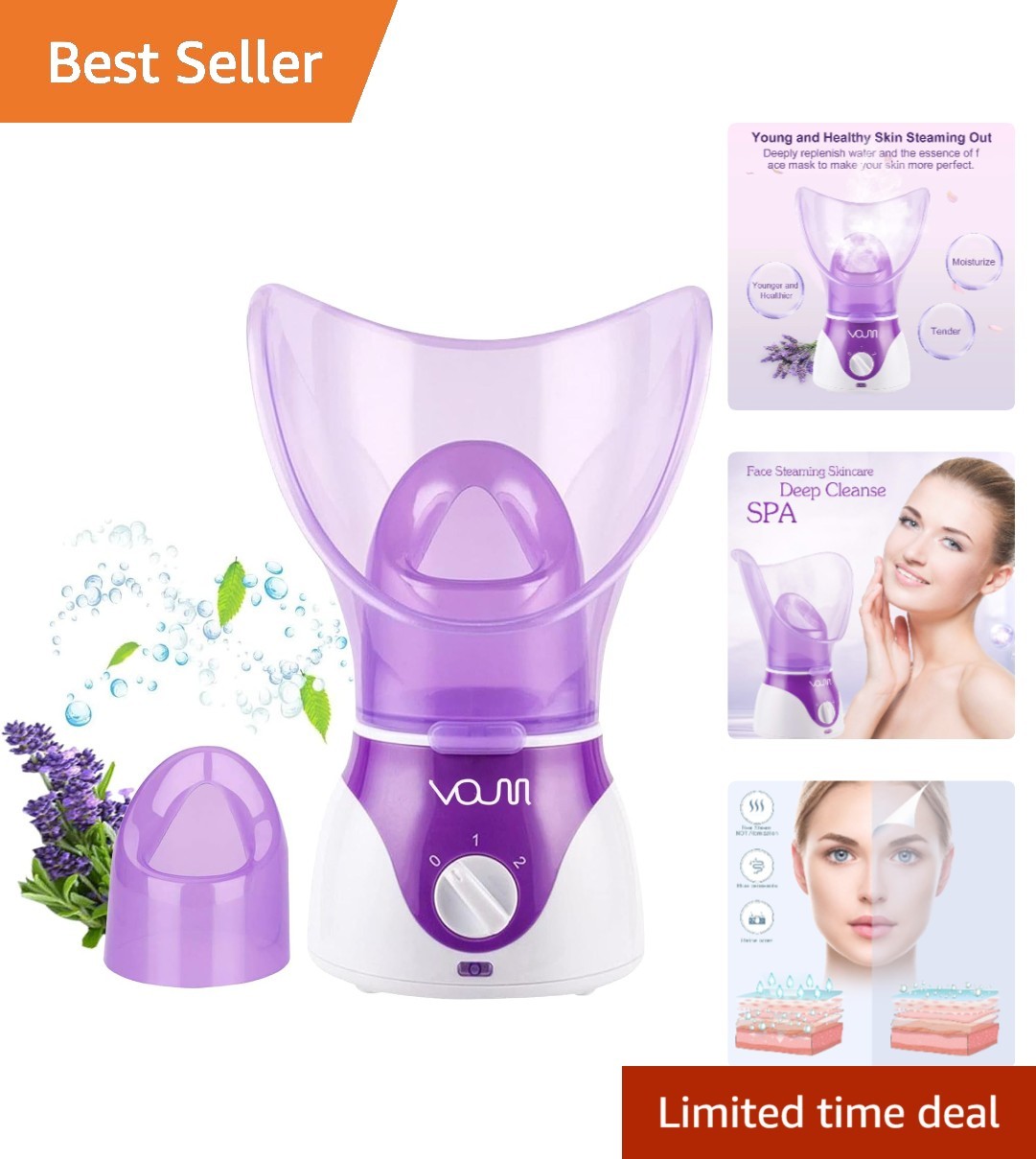 LIVIVO Facial Steamer and Inhaler with Aromatherapy Diffuser Purple