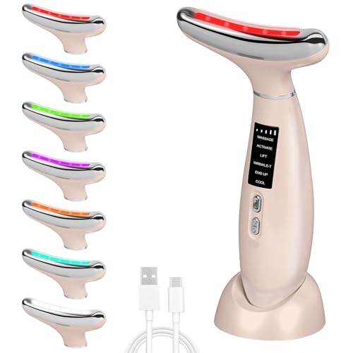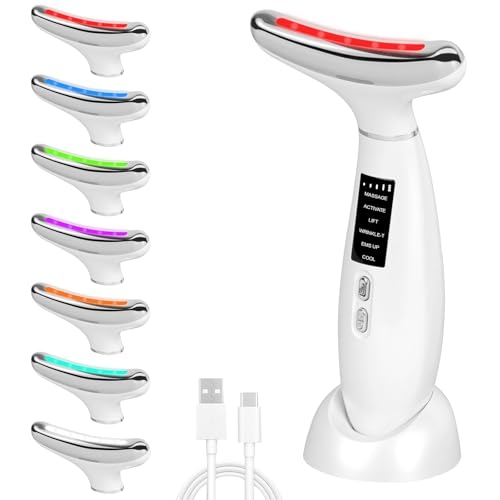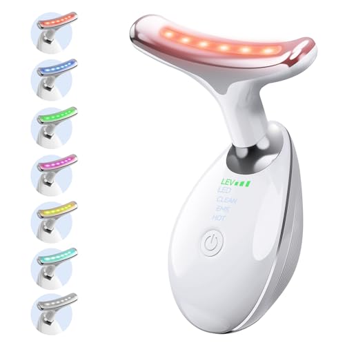 Face Massager, Facial Device & Neck Massager, Electric Face Toning Devices with 45±5°C Heating, 3 Modes and 7 Color Light for Skin Toning & Anti-Wrinkle, Beauty Device for Women