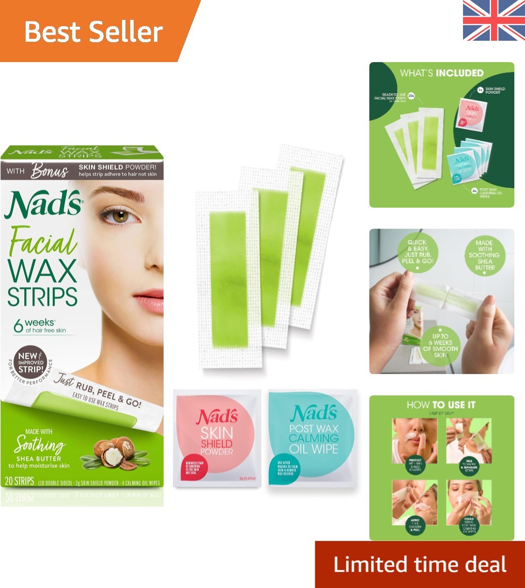 Nad's Facial Wax Strips Set – Complete Hair Removal Kit for Ladies