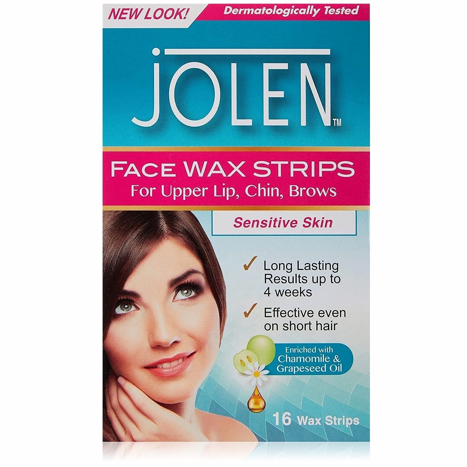Jolen Facial Strip Wax for Sensitive Skin (16 strips) - Upper Lip, Chin, Brows