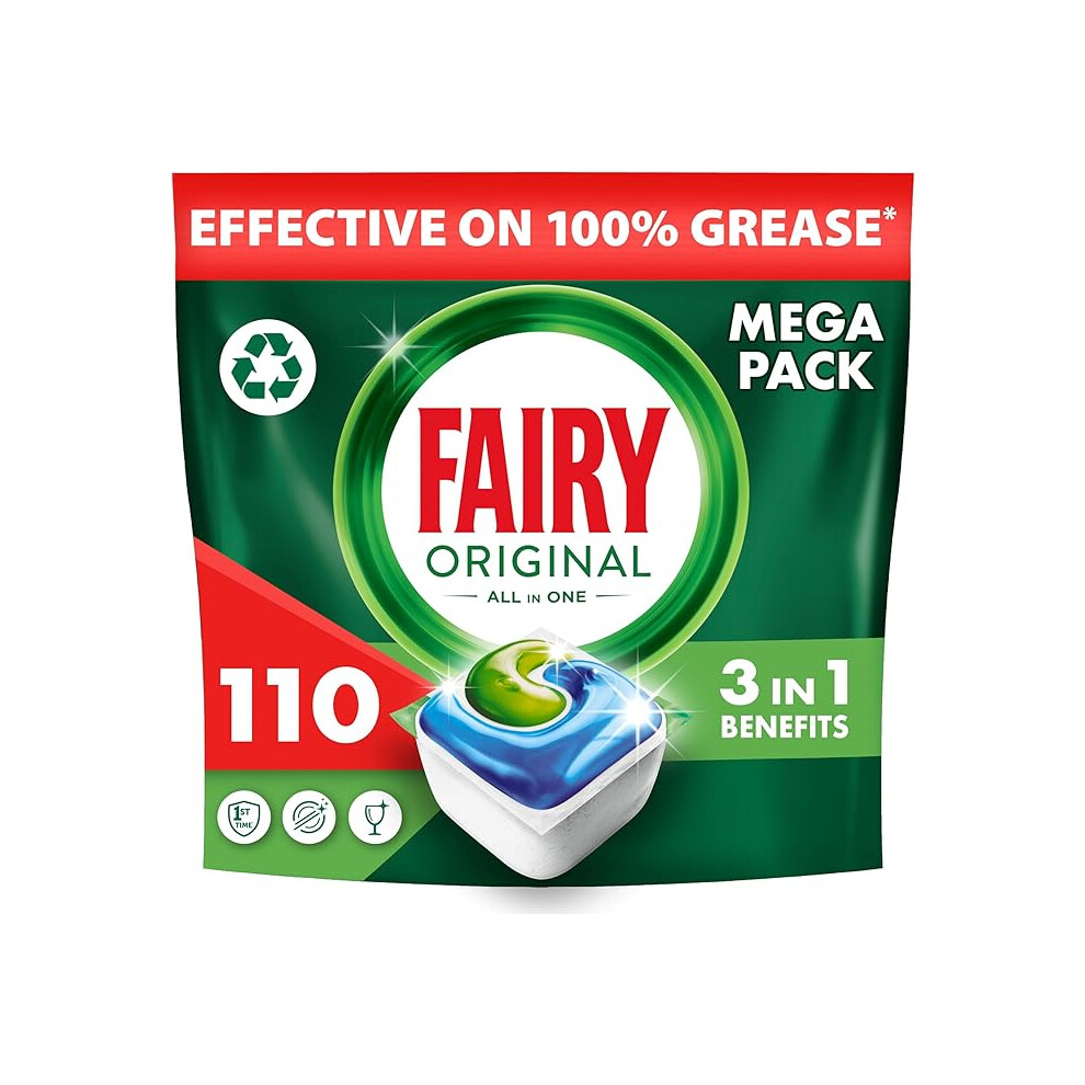 Fairy All-In-1 Dishwasher Tablets Bulk, 110 Tablets, Original, Effective Even On Dried-On Grease