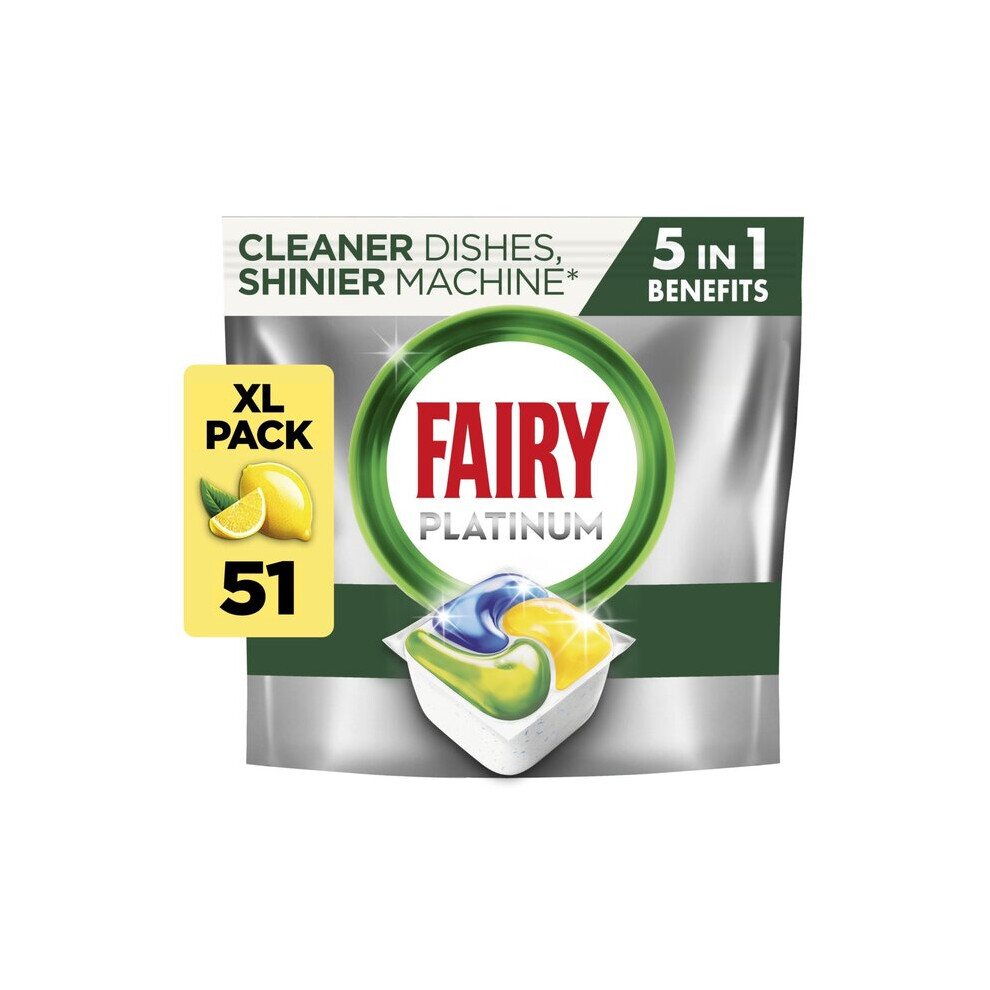 Fairy Platinum Lemon All In One Dishwasher Tablets, With Shiny Cleaning & Scent of Lemon, 59 Tablets