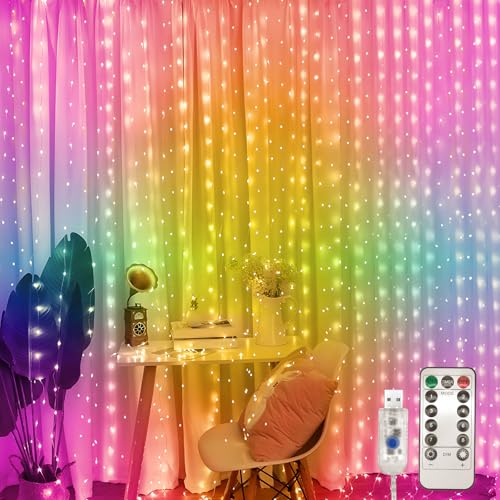 Curtain Fairy Lights Indoor, 3mx3m 300LED Curtain Light USB Powered Waterproof