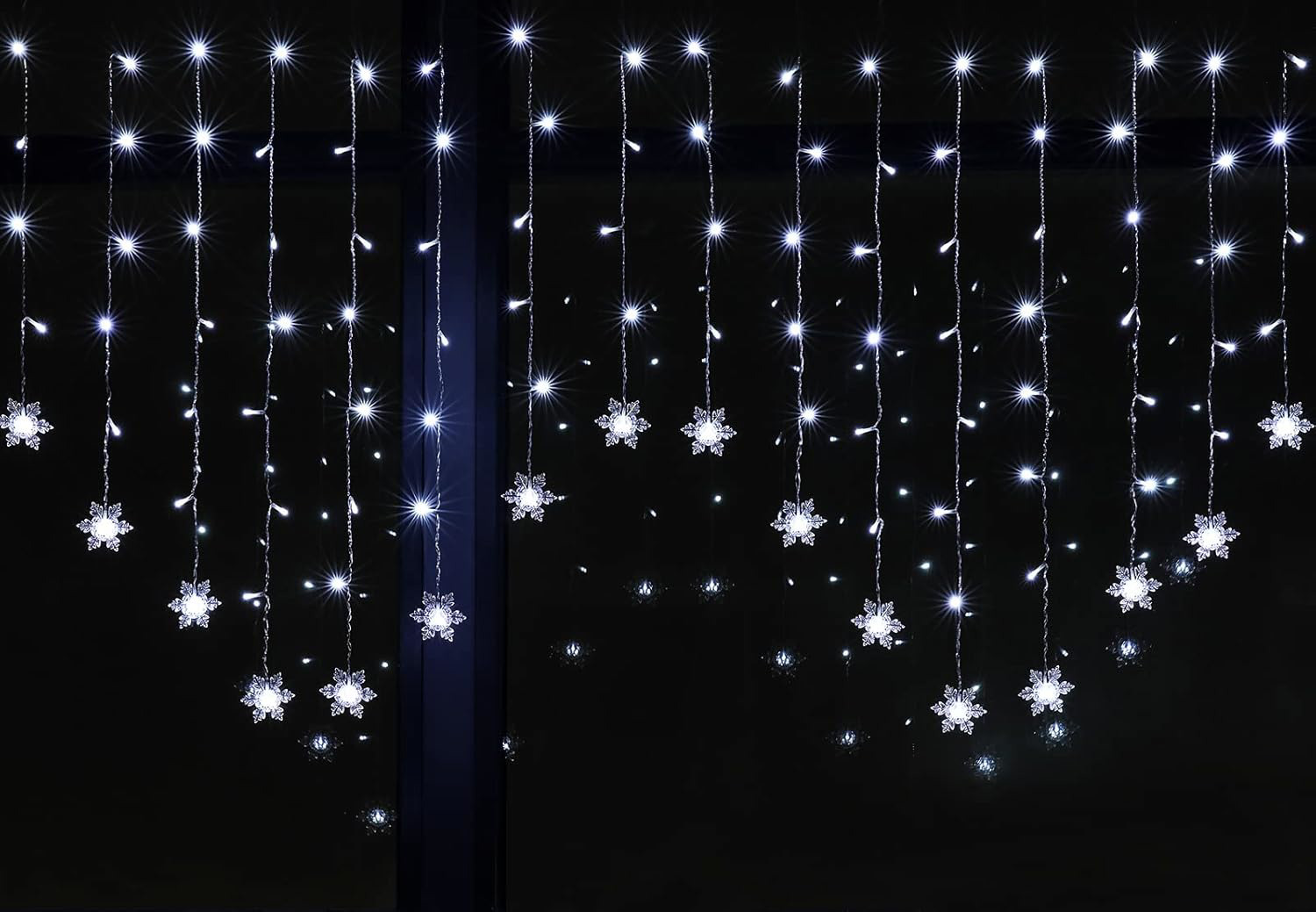 BLOOMWIN Christmas Window Lights 2m x 1m 104 LEDs Snowflakes Curtain Fairy Light