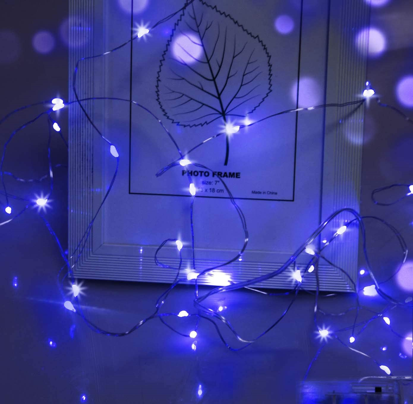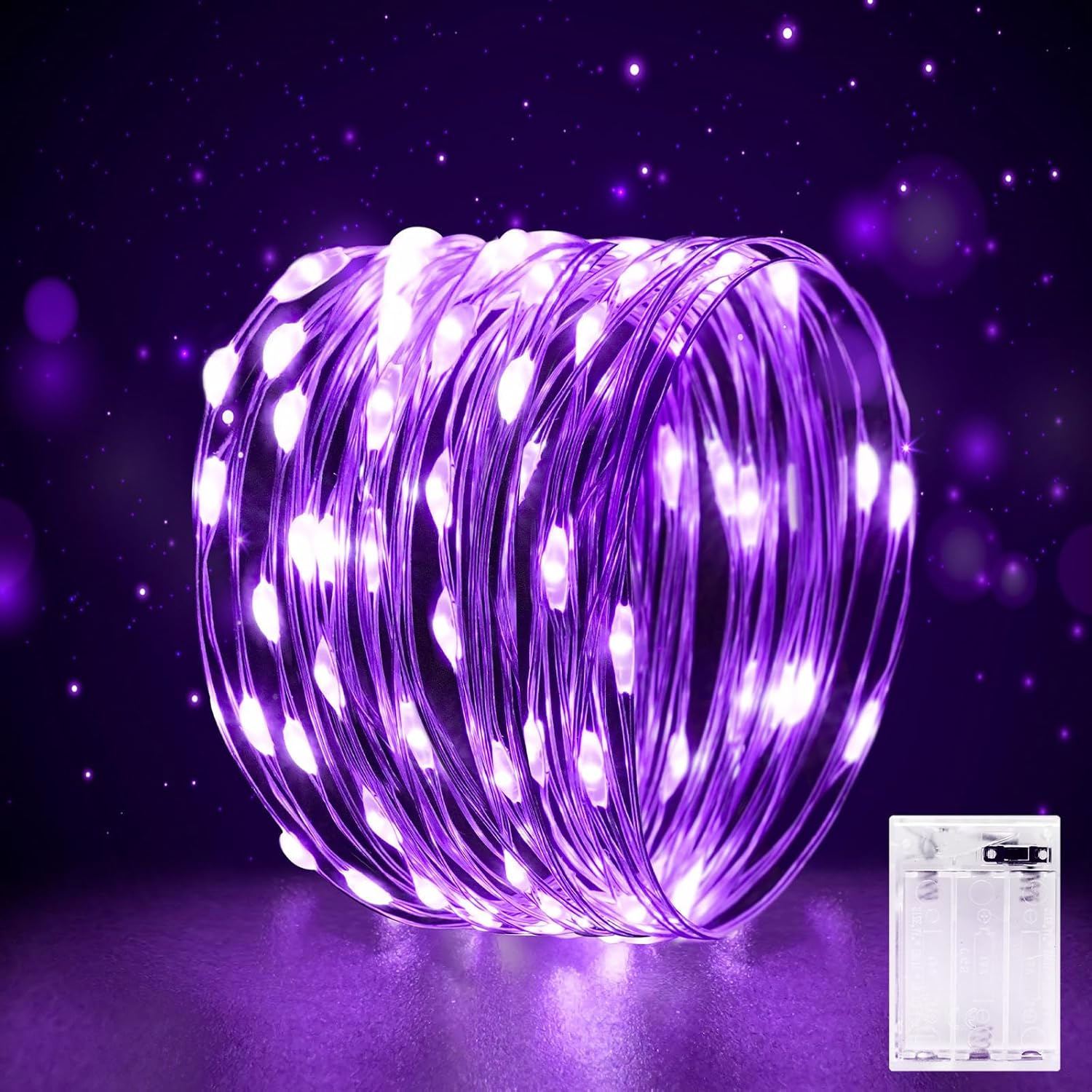cshare Fairy Lights for Bedroom, 5m 50 LEDs Battery Operated String Lights IP65 Waterproof Micro Silver Wire LED Firefly Light for Bedroom DIY Christmas Tree Gifts Halloween Decorations(Purple)