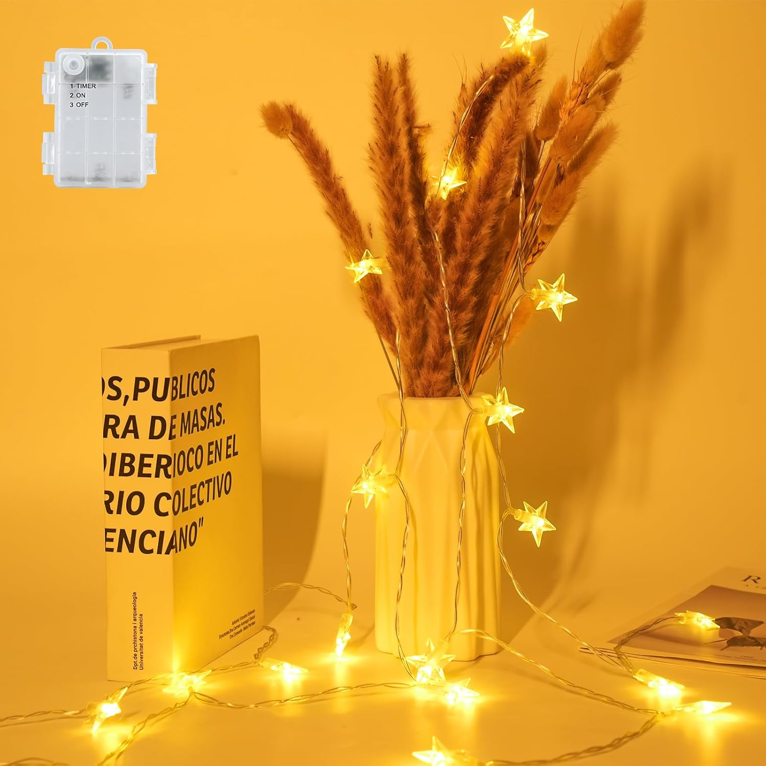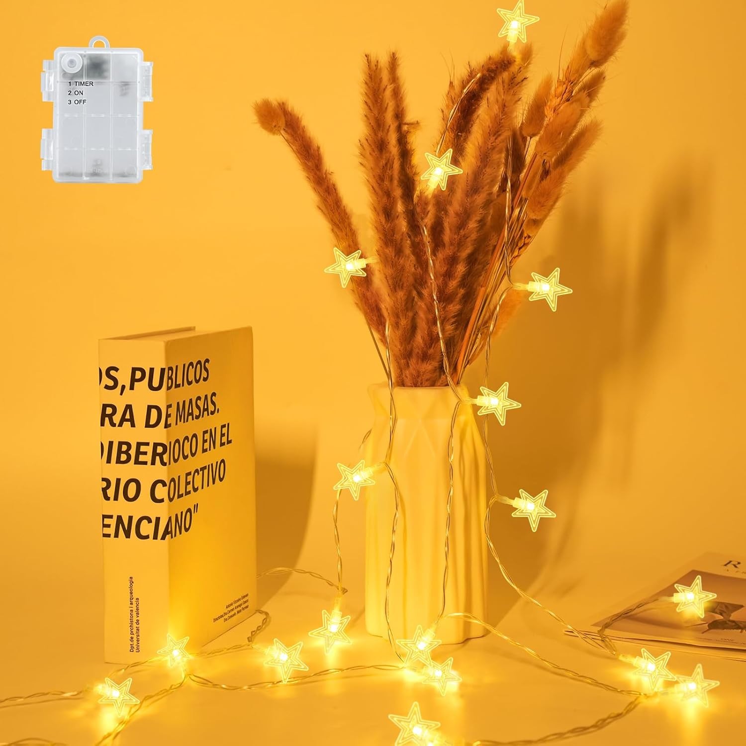 cshare Star Fairy Lights, 6.6Ft 20LED String Light Battery Operated with Timer, Star Night Fairy Lights for Bedroom Christmas Party Indoor Decoration -Warm White