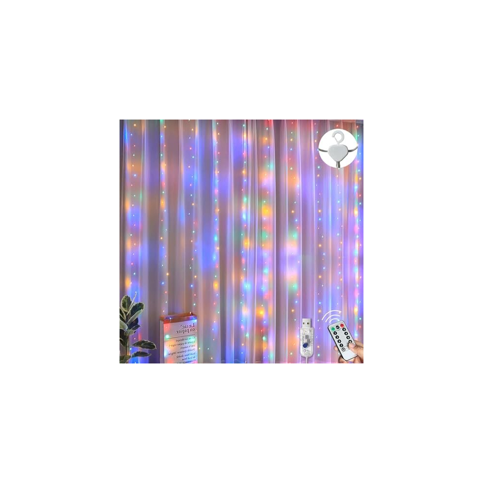 Curtain Fairy Lights, 3M×3M 300LED USB Fairy Lights for Bedroom, 8 Modes Curtain
