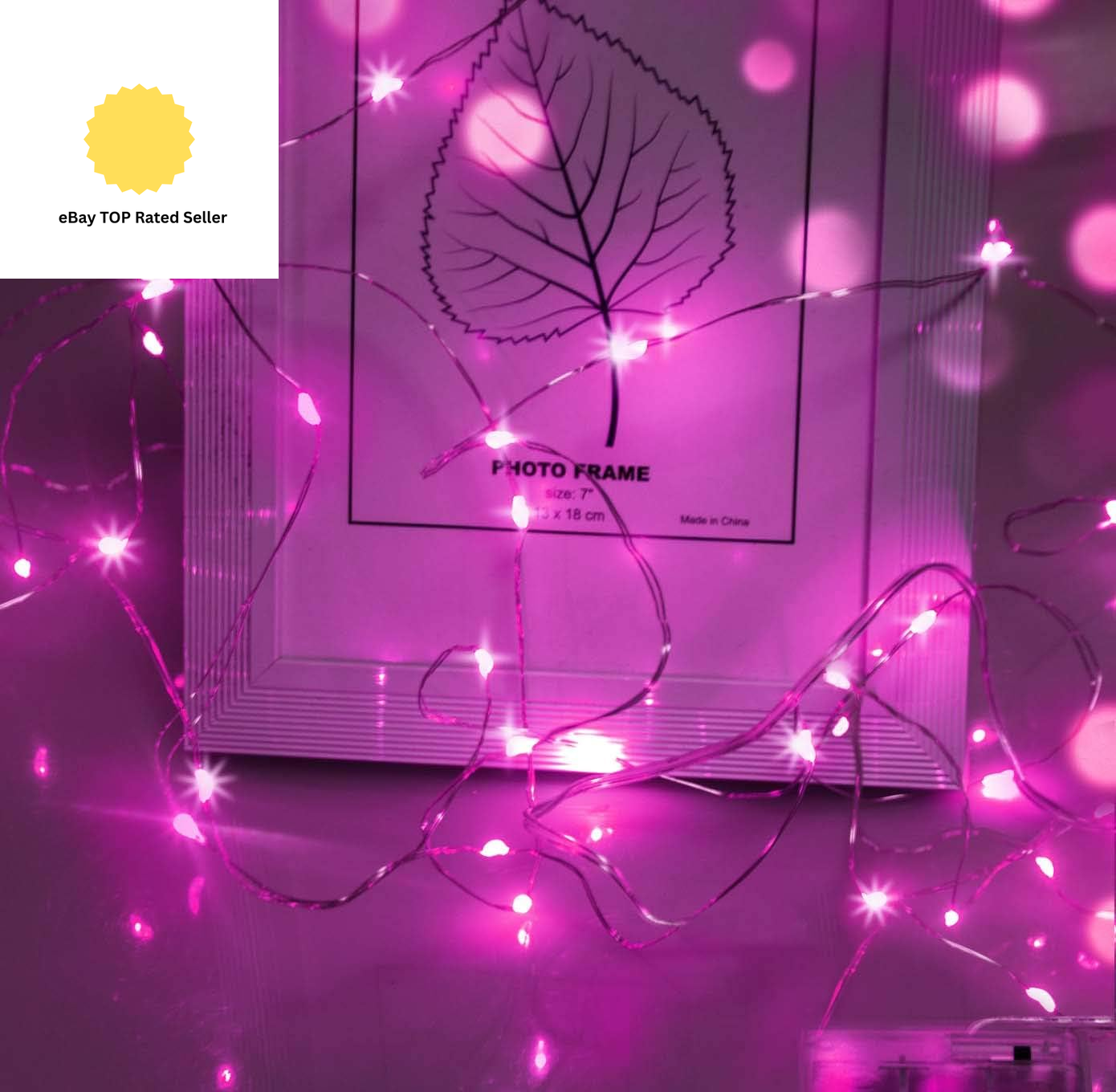 Pink Fairy Lights for Girls Bedroom, 50 Leds 5M/16.4Ft Battery Powered S