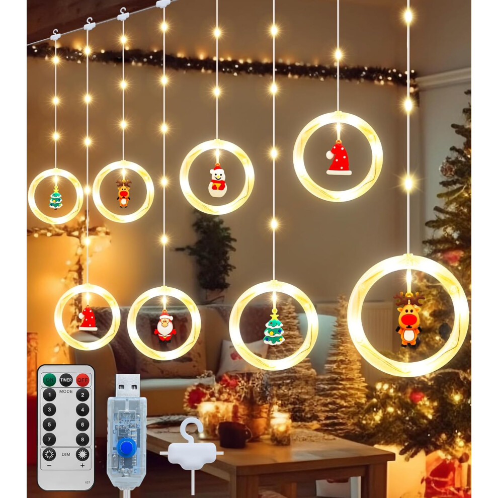 (Warm White) Christmas Window Lights, LED Curtain String Lights for Indoor with Remote, 8 Modes, USB Powered,Xmas Fairy Lights for Party,Bedroom Decor