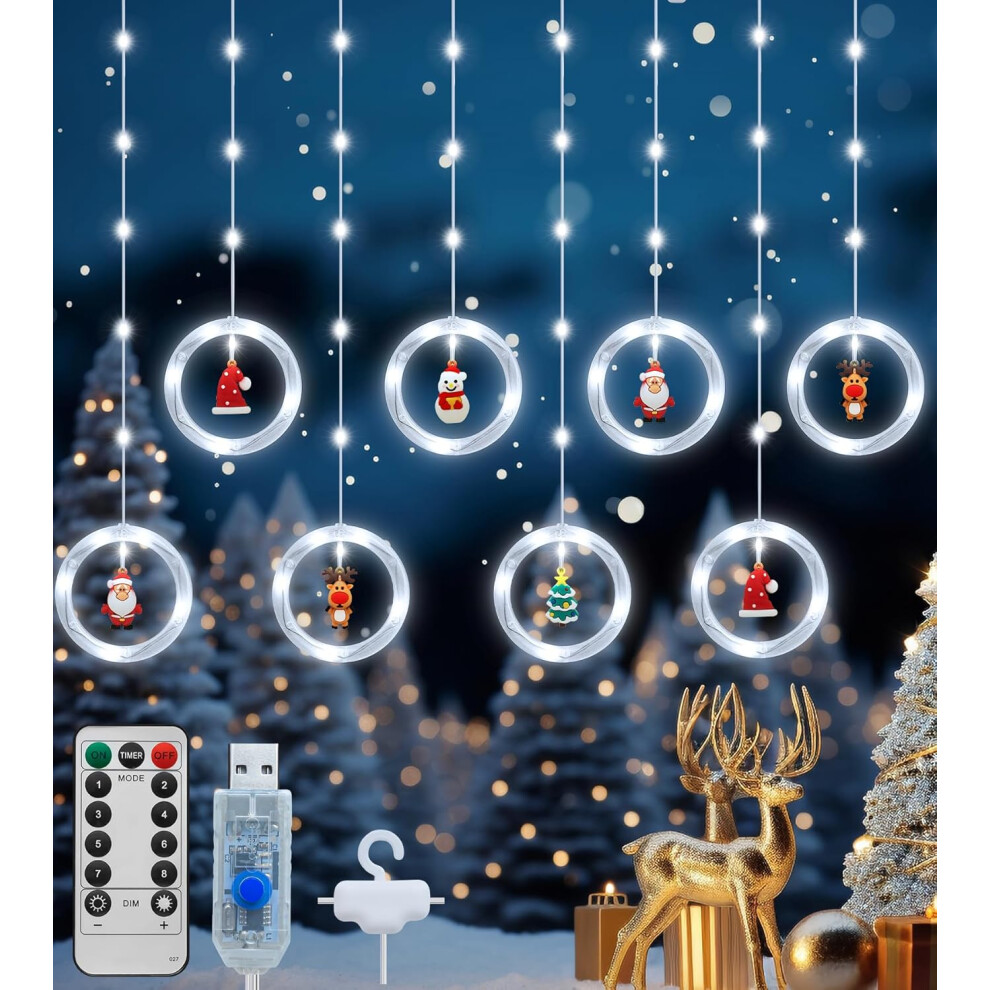 (Cool White) Christmas Window Lights, LED Curtain String Lights for Indoor with Remote, 8 Modes, USB Powered,Xmas Fairy Lights for Party,Bedroom Decor