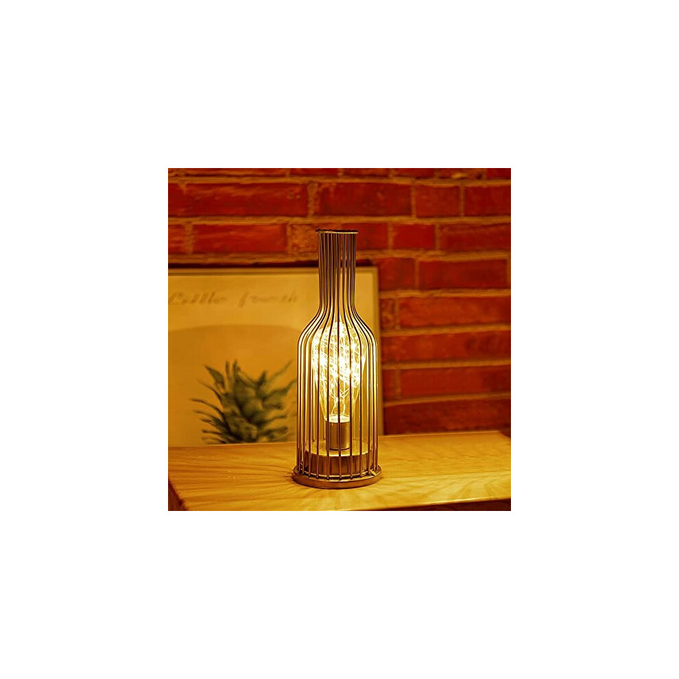 MUCHER Metal Cage Table lamp Battery Powered Night Light with LED Fairy Starry String Lights for Bedroom Home Weddings Parties Patio Indoors Outdoors(Wine Bottle Shape)