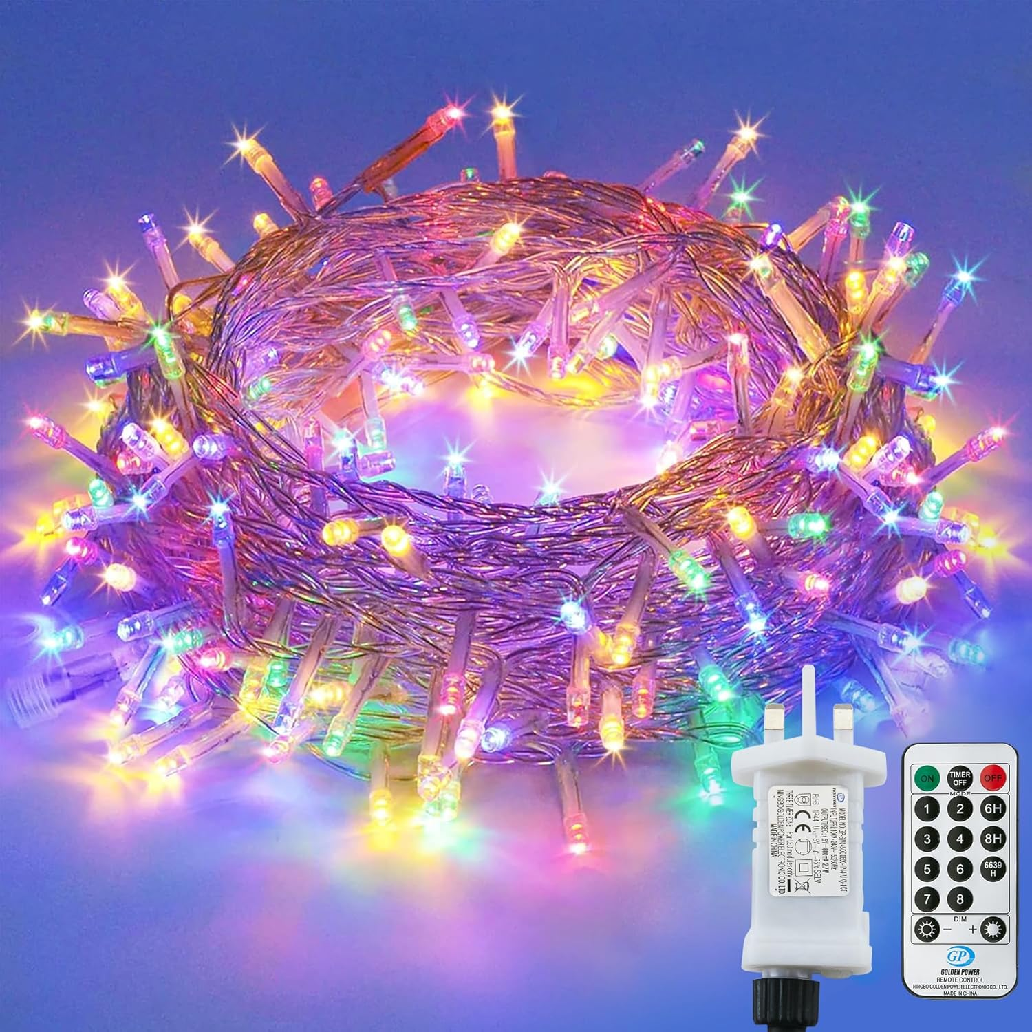 Gcstnn Fairy Lights Plug in, 20M 200LED Christmas Tree String Lights Main Powered 8 Modes Timer Waterproof Fairy Lights for Bedroom Garden Outdoor Indoor Decorations(Multicolor)