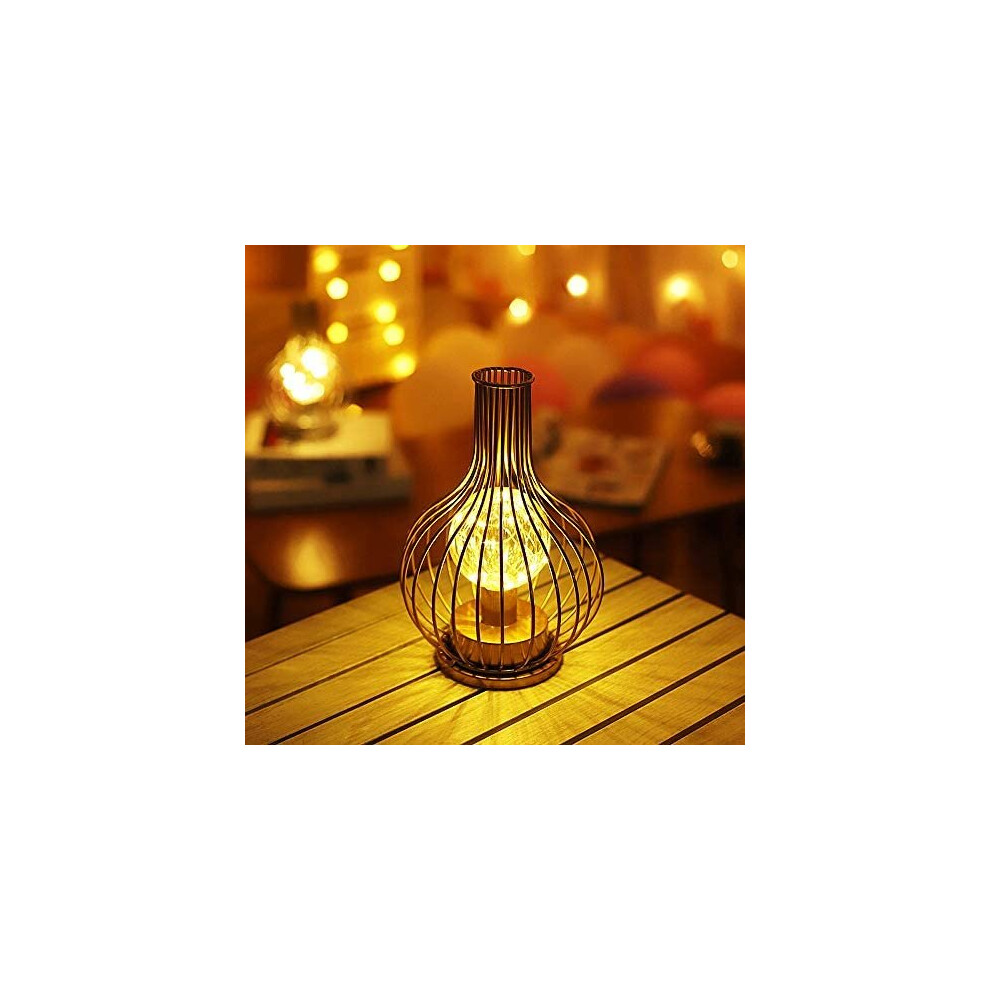 MUCHER Metal Cage Table lamp Battery Powered Night Light with LED Fairy Starry String Lights for Bedroom Home Weddings Parties Patio Indoors