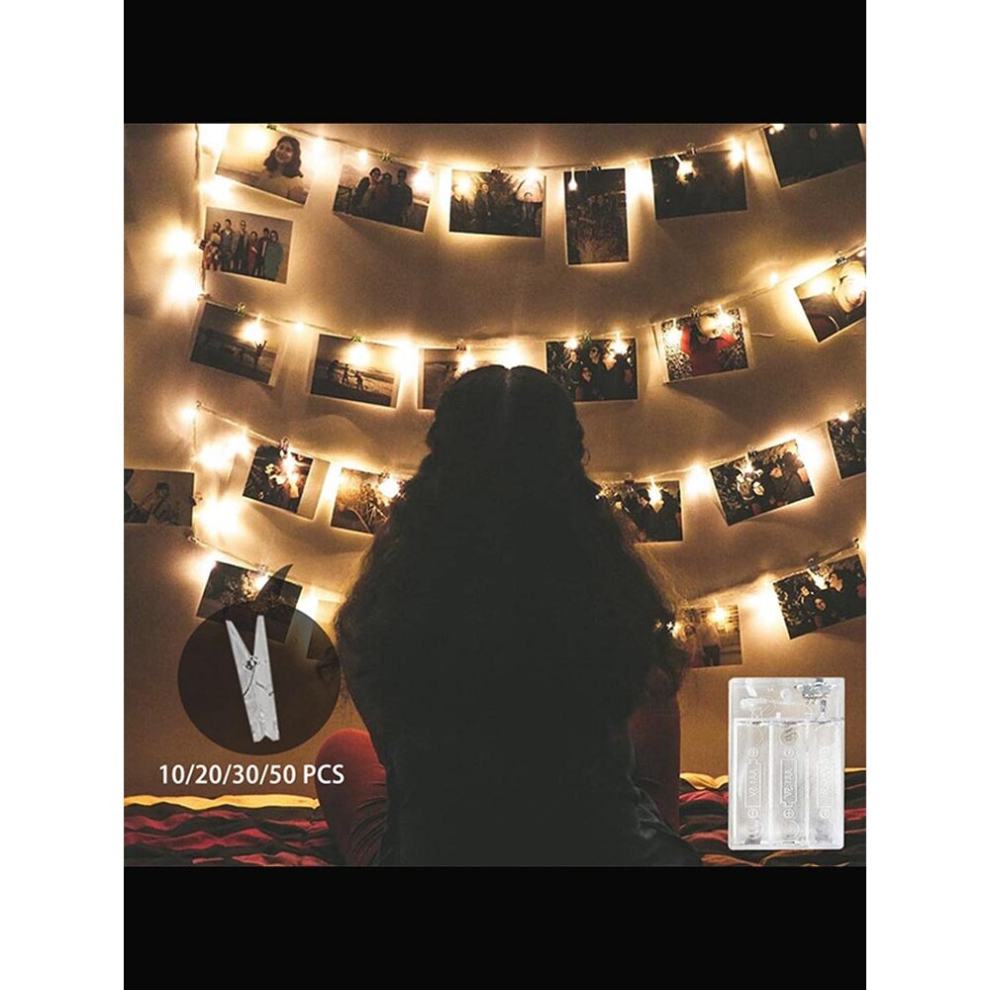 (Warm White, 2M20LED 20pcs clamp) 1Pc Led Photo Clips String Light Clear Clips Fairy Lights For Bedroom Wall Hanging Pictures Cards Party Decor