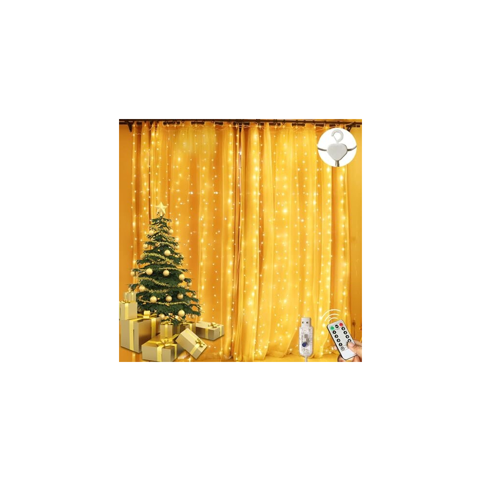 LITYBY Curtain Fairy Lights, 3m×3m 300LED USB Fairy Lights for Bedroom, 8 Modes Curtain String Lights with Remote Control, Christmas Lights for Bedroom Wall Party Wedding Decorations(Warm White)
