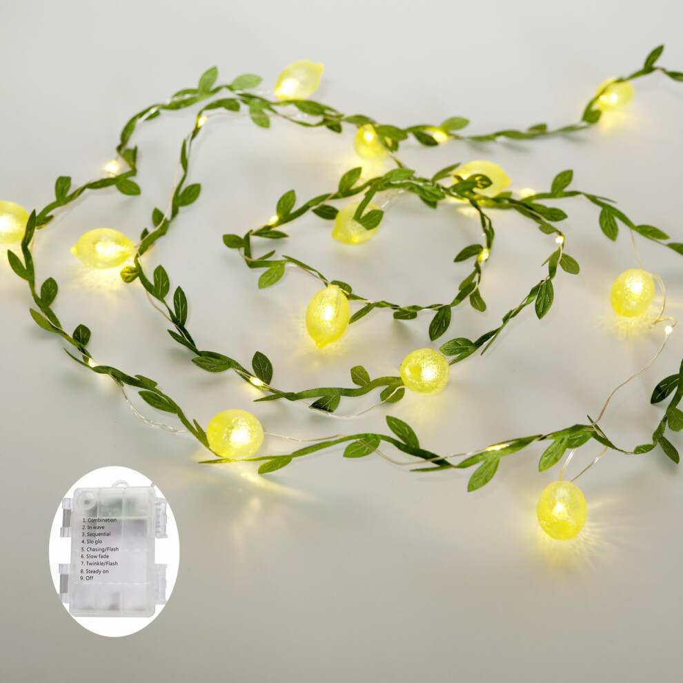 Lemon Decor String Lights Battery Operated Light String 10FT 30LEDs Lemon Vine String Lights Leaves Fairy Lights for Bedroom Birthday Garden Party