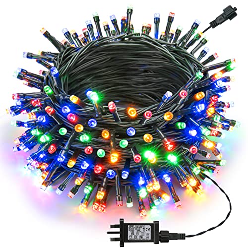 Joomer Christmas Lights Outdoor, 20M 200LED Christmas Tree Lights Mains Powered with Timer, 8 Modes Multicolor Fairy Lights Waterproof for Halloween Outside Window Garden Indoor Xmas Party Decorations
