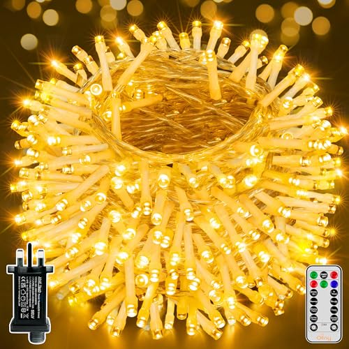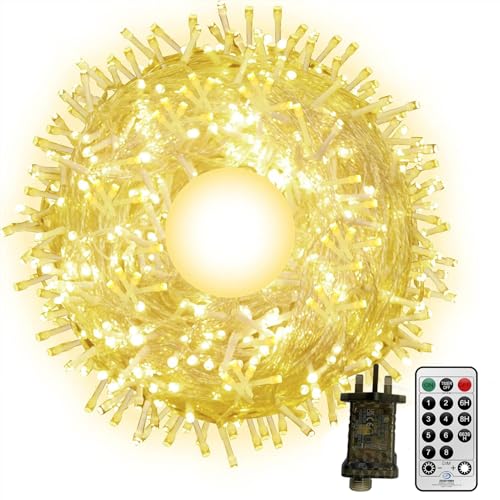 Abkshine 100M 800 LED Outdoor Christmas lights, Mains Powered Warm White Fairy Lights w/ Remote, Waterproof String Light for Indoor Outside Christmas Tree Garden Gazebo Patio Fence Pathway Decorations