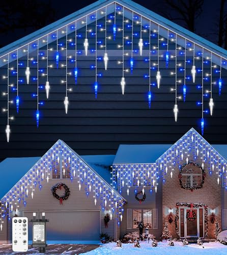 Icicle Outdoor Christmas Lights,10M/33FT 270 LED Icicle Lights with 45 Icicles,Blue White Fairy Twinkle Lights - IP44 Waterproof/Remote/8 Modes/Memory/Timer for Outside Eaves Xmas Roof Decorations