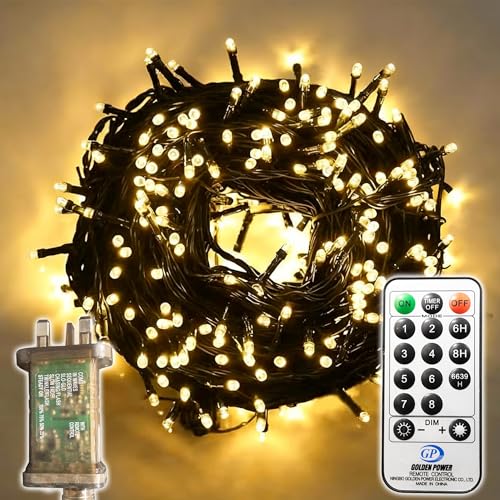 Longgoearn 60M 500 LED Outdoor Fairy Lights, Christmas Tree Lights Plug in 8 Modes Remote Control Mains Powered Waterproof String Lights for Garden, Yard, Wedding, Party Decor- Warm White