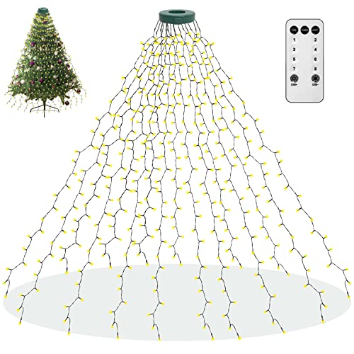 aneeway Christmas Tree Lights Fairy Lights 6.6FT x 16Line 400LEDs String Light Mains Powered Waterproof with Remote & Timer 8 Modes for Outside Indoor Party Xmas Tree Decorations Warm White