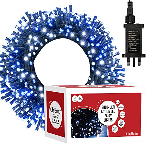 GloBrite 300 LED Fairy Lights - Versatile Christmas Lights with 8 Modes, Outdoor Fairy Lights, Christmas Tree Lights and Christmas Decorations - Waterproof Christmas Lights Outdoor - Blue/White