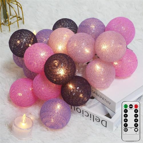 Ciskotu Fairy Lights LED String Lights - 3.8M 20 Pcs UK Plug 8 Lighting Modes Cotton Ball String Lights with Remote Control for Wedding Party Home Christmas Decoration