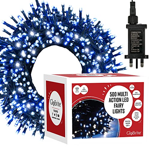 GloBrite 500 LED Fairy Lights - Versatile Christmas Lights with 8 Modes, Outdoor Fairy Lights, Christmas Tree Lights and Christmas Decorations - Waterproof Christmas Lights Outdoor - Blue/White