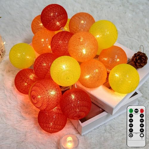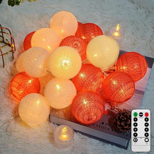Ciskotu Fairy Lights LED String Lights - 3.8M 20 Pcs UK Plug 8 Lighting Modes Cotton Ball String Lights with Remote Control for Wedding Party Home Christmas Decoration, Maplered
