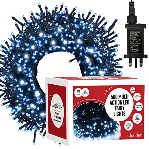 GloBrite 500 LED Fairy Lights - Versatile Christmas Lights with 8 Modes, Outdoor Fairy Lights, Christmas Tree Lights and Christmas Decorations - Waterproof Christmas Lights Outdoor - Cool White