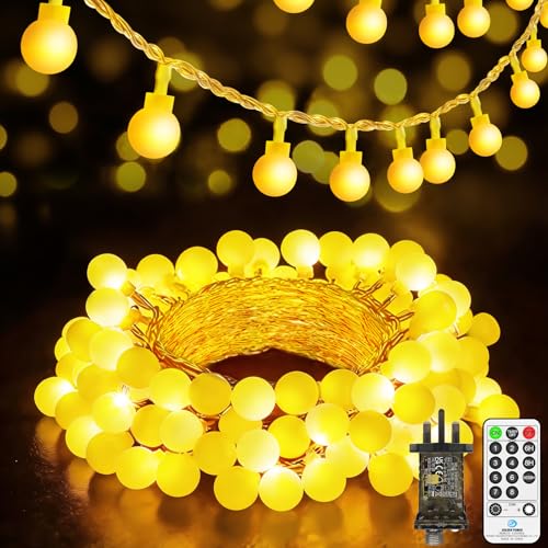 JXLEDAYY 20M 200 LED Fairy Lights Outdoor Plug in Globe String Lights Waterproof Christmas Lights with Remote 8 Modes for Outside Garden Bedroom Patio Camping Party Wedding Decorations Warm White