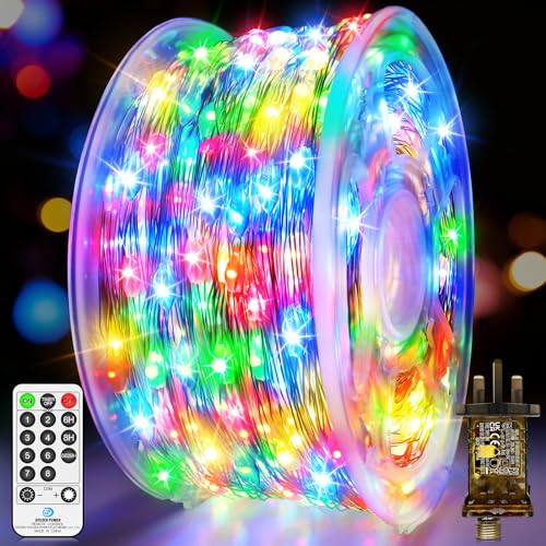 SHATCHI 100 Multicolour LEDs Battery Operated Fairy Lights Waterproof Indoor/Outdoor 8 Changing Modes Timer Christmas Wedding Party Birthday Decorations