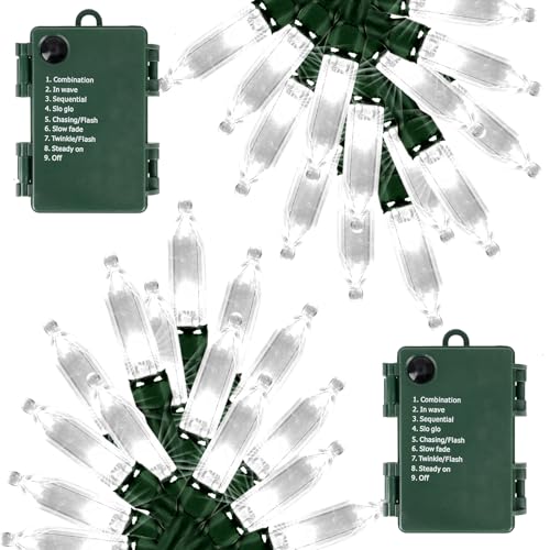 AcaJoe Christmas Lights Indoor 2 Pack 16.5 Ft 50 LED Fairy Lights Battery Operated Outdoor Waterproof Mini String Lights 8 Lighting Modes for Xmas Tree Party Wedding Festival Decor (White)