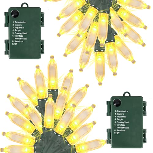 Christmas Lights Indoor 2 Pack 16.5 Ft 50 LED Fairy Lights Battery Operated Outdoor Waterproof Mini String Lights 8 Lighting Modes for Xmas Tree Party Wedding Festival Decor (Yellow)
