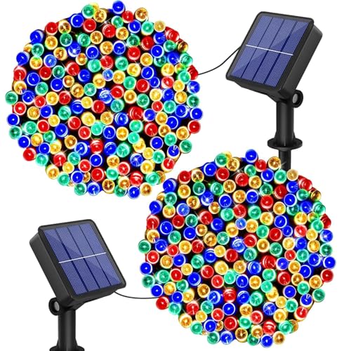 bitjam 2 Pack Solar Fairy Lights Outdoor Garden, 2 x 12M 120LED String Lights Solar Powered Waterproof 8 Modes Multicolor Decorative Lights for Christmas Fence Tree Party Patio