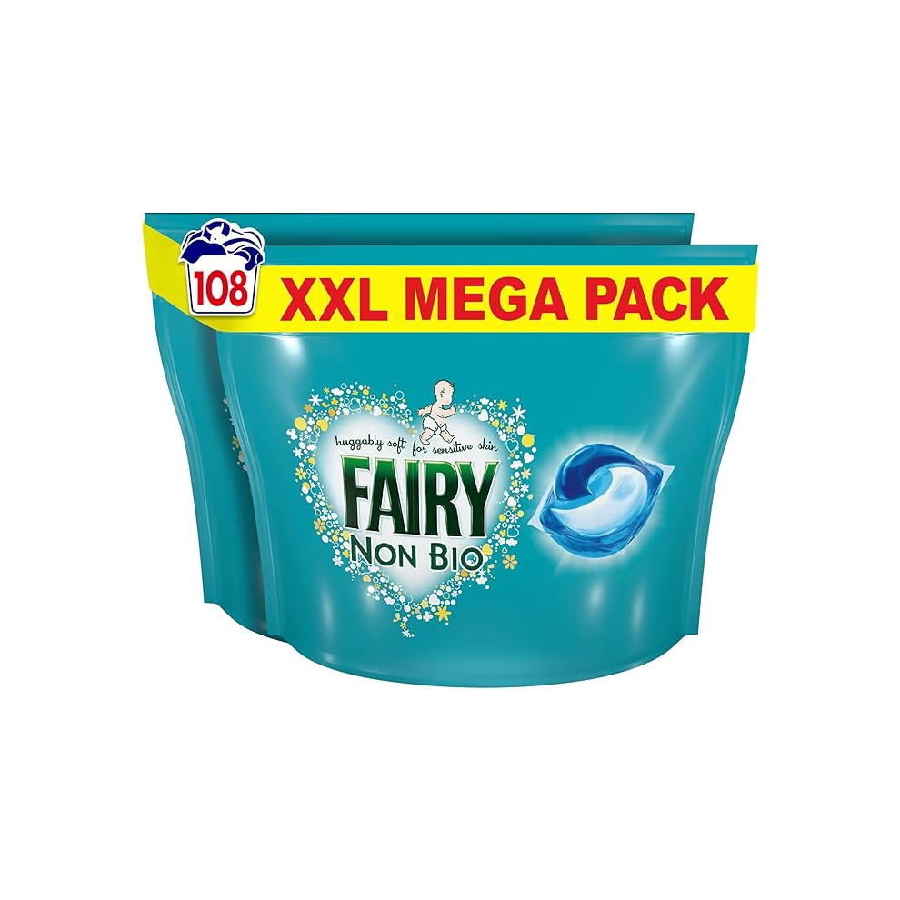 Fairy Non-Bio PODS Washing Liquid Laundry Detergent Tablets Capsules 108 Washes 54x2 Huggably Soft for Sensitive Skin