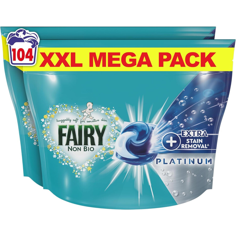 Fairy Non Bio Platinum PODS? Washing Liquid Capsules, 104 Washes (52x2), With Extra Stain Removal