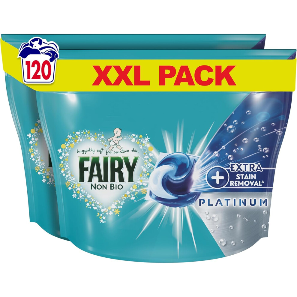 Fairy Non Bio Platinum Pods Washing Capsules - Extra Stain Removal, 120 Washes (60x2) - Skin-Safe & No.1 for Sensitive Skin (Code 81753716)