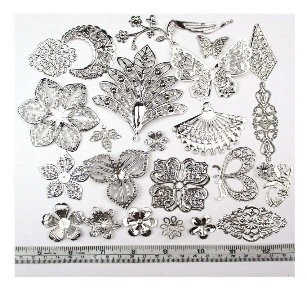 ALL in ONE Mixed Platinum Filigree Charm Pendant Jewelry Findings: 50g (Silver Filigree Charm)