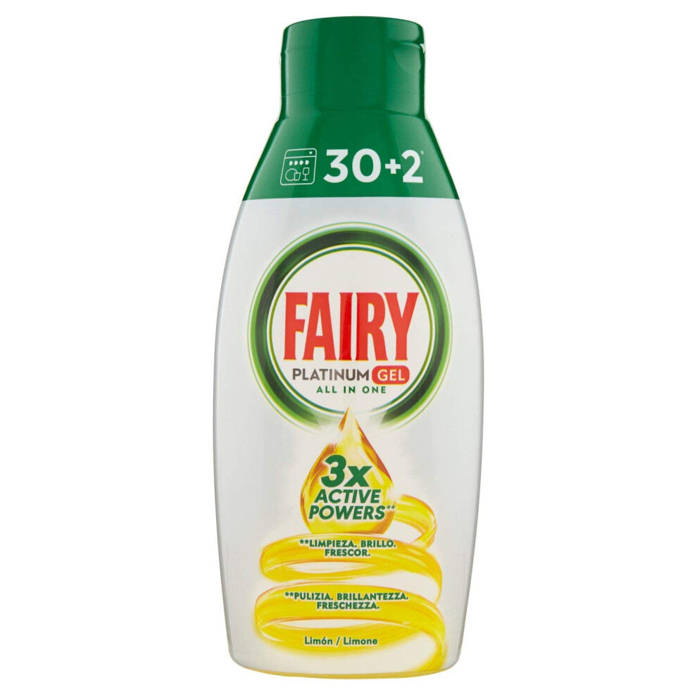 Fairy Platinum Gel Detergent Dishwasher All in 1, Lemon, 650 ml, 32 Washes