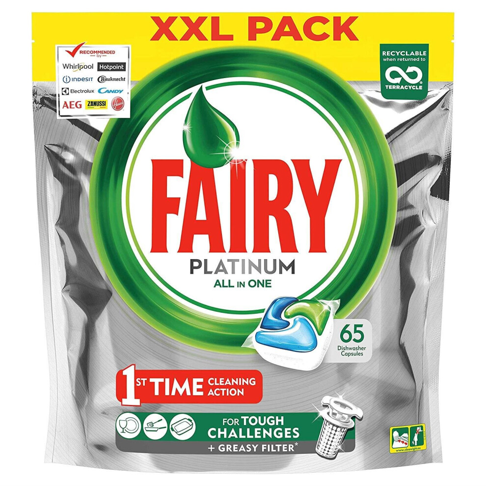 Fairy Platinum Dishwasher Tablets Original All-in-One Soft Pouches - XXL 65 Pack