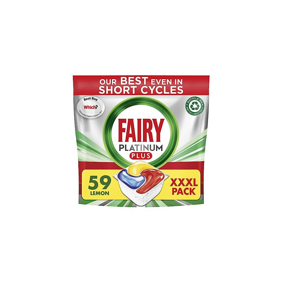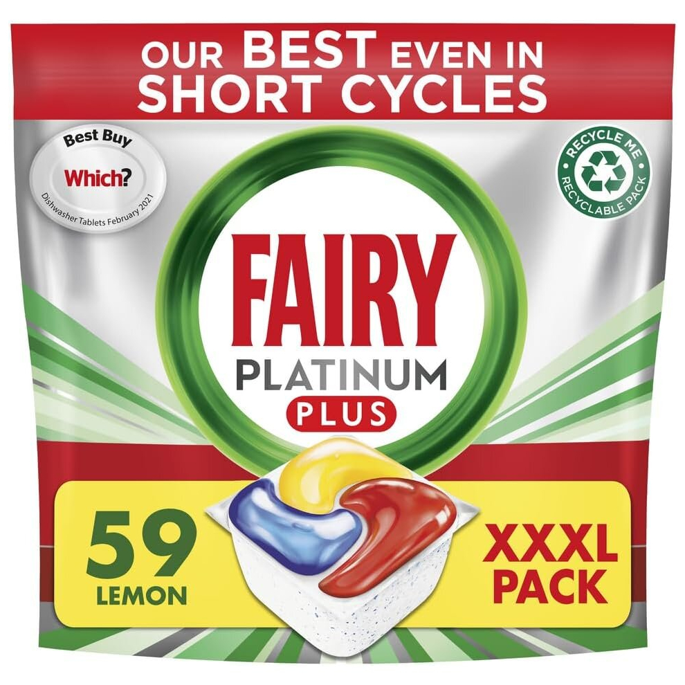 Fairy Platinum Plus Dishwasher Tablets â Bulk Pack 59 Tablets XXL Pack Lemo