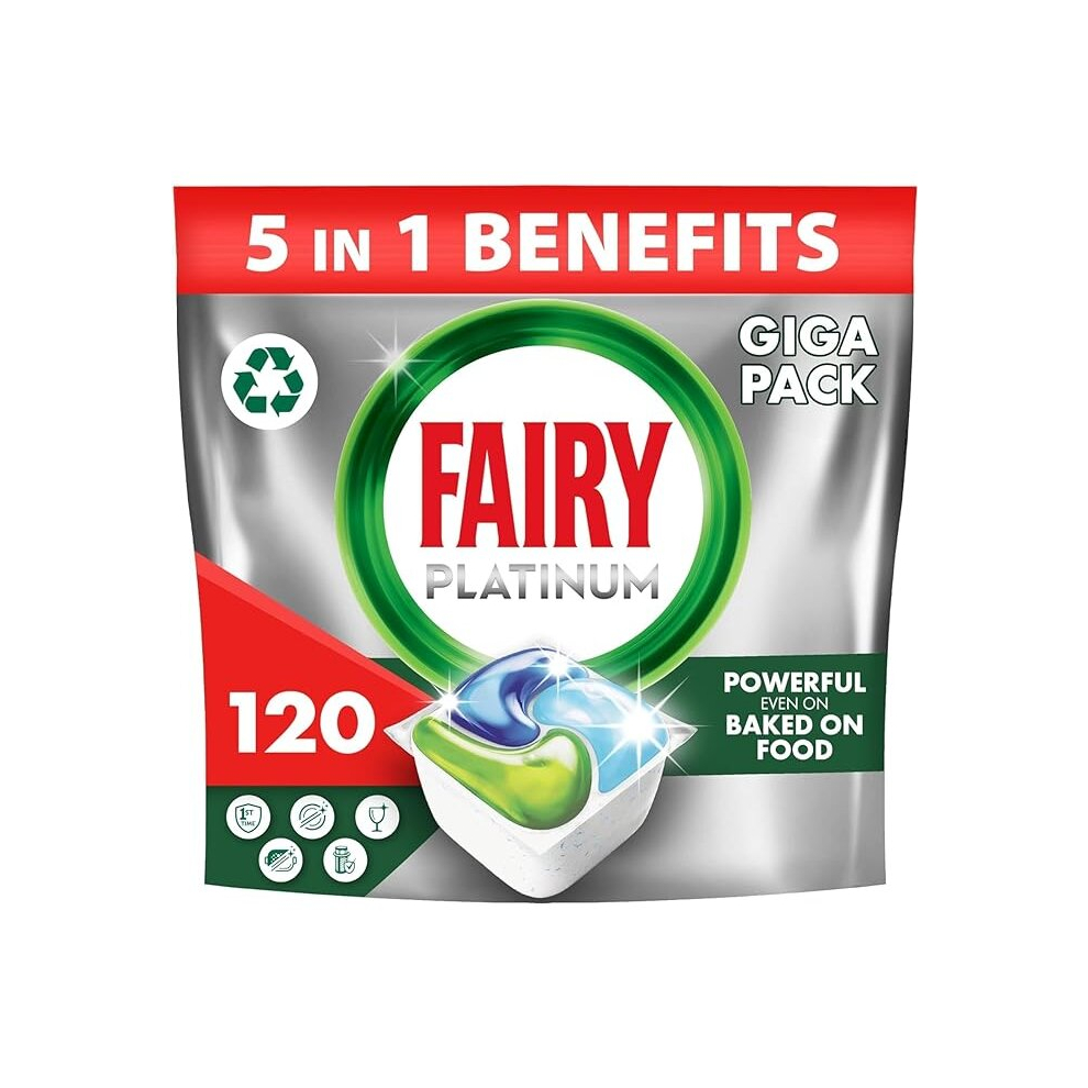 Fairy Platinum All-In-One Dishwasher Tablets â 120 Tablets (24x5) with Anti-Dull Technology, Rinse Aid Action, Glass & Silver Protection