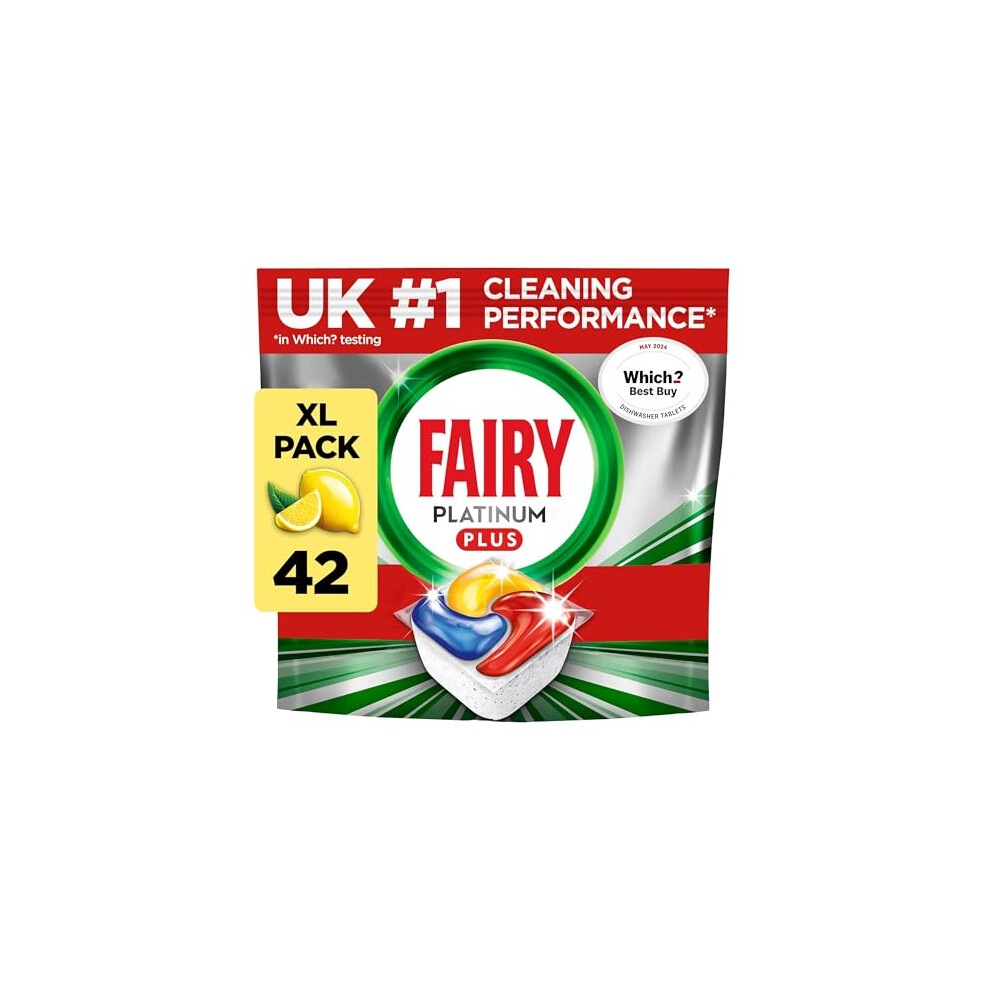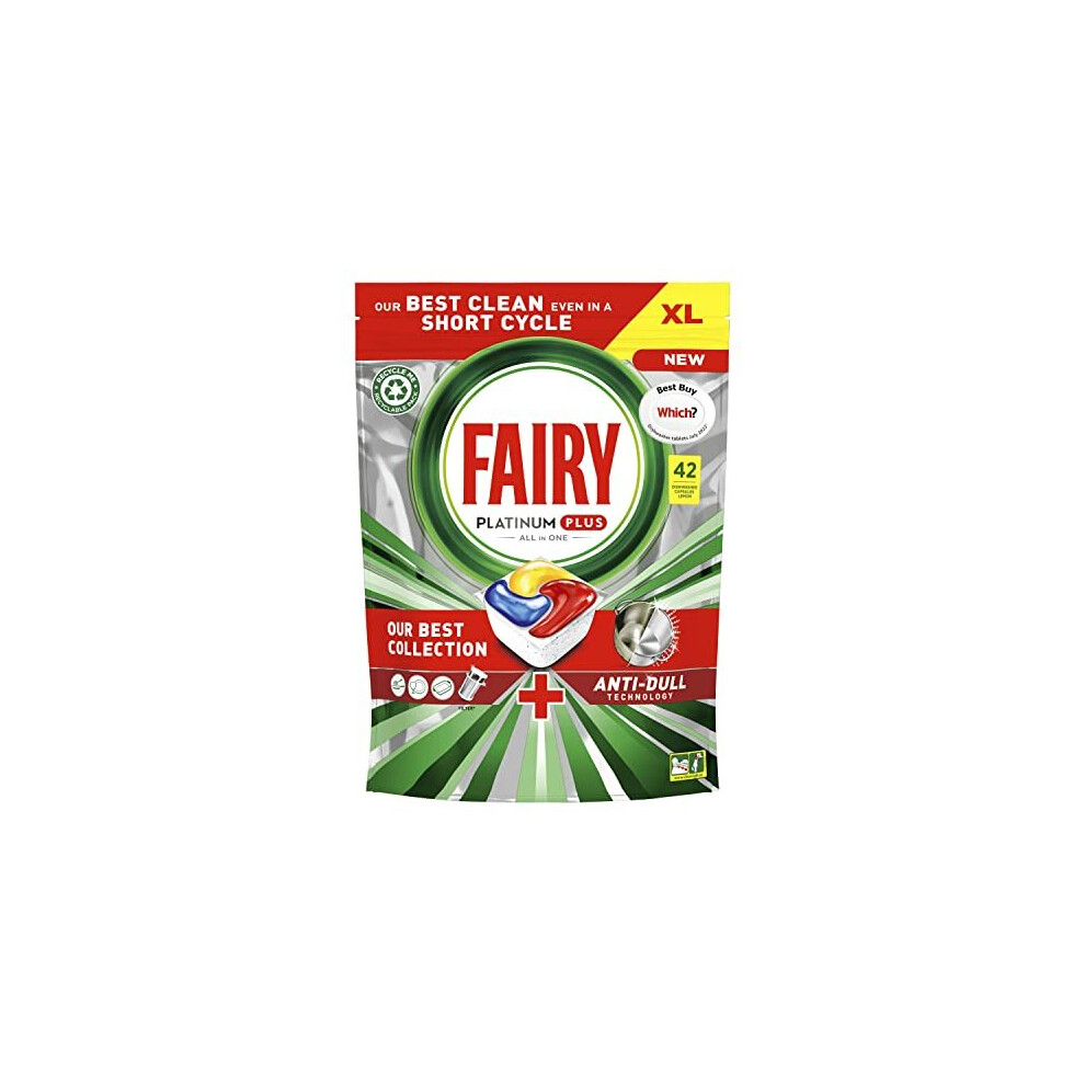 Fairy Platinum Plus Dishwasher Tablets â 42 Pack, Lemon, Anti-Dull Technology
