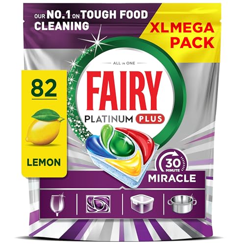 Fairy 30 Minute Miracle Platinum Plus Dishwasher Tablets, 82 Capsules,Fairy N.1 In Tough Food Cleaning, Dishwasher Cleaner