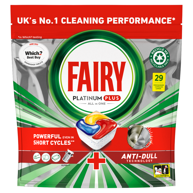 Fairy Platinum Plus All In One Dishwasher Tablets, Lemon, 29 Capsules
