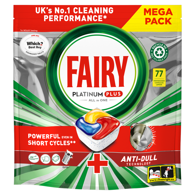 Fairy Platinum Plus All In One Dishwasher Tablets, Lemon, 77 Capsules