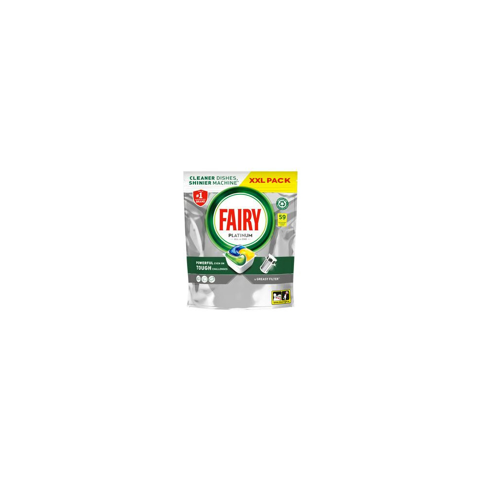 Fairy Platinum Plus Dishwasher Tablets ? 59 Pack, Lemon, Anti-Dull Technology & Rinse Aid